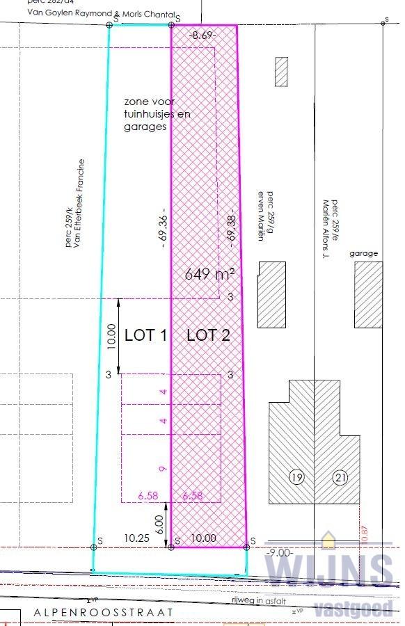 De zone voor het hoofdgebouw bedraagt 6,58 m breed x 17 meter diep.