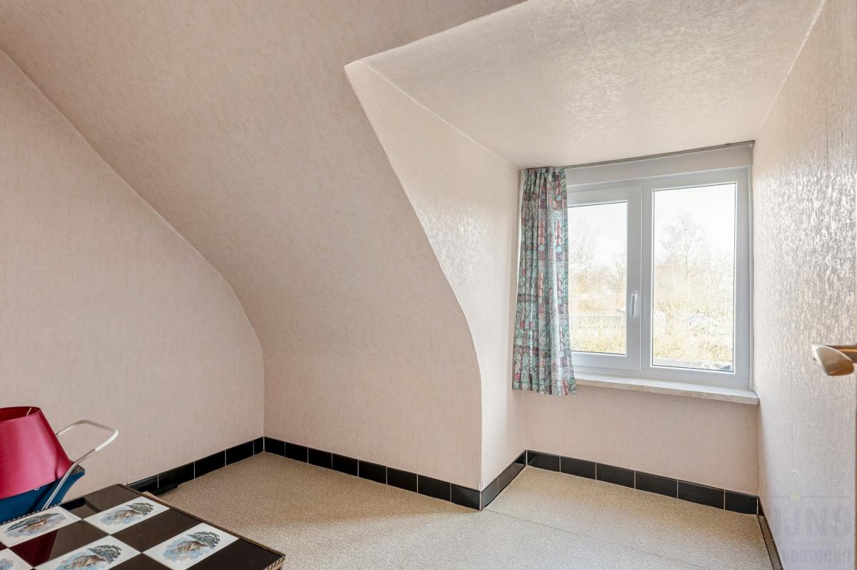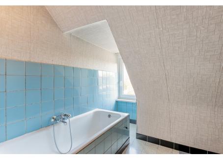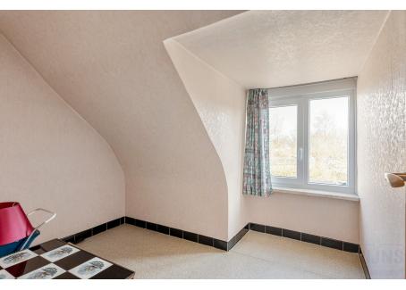 Eerste verdieping: 1 ruime slaapkamer, 1 kleinere slaapkamer (ideaal als kinderkamer of bureau), badkamer met ligbad en lavabo.