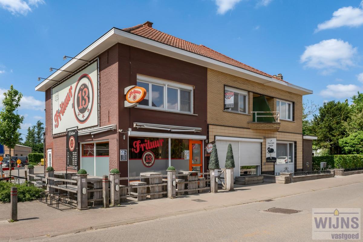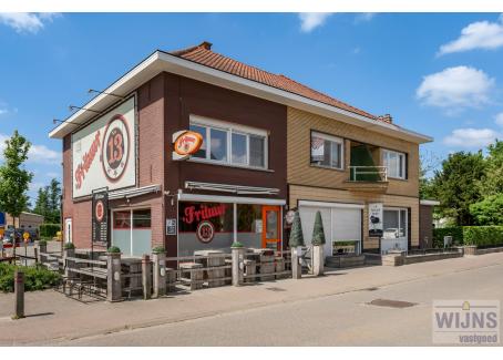 Een gebouw gelegen in het commerciële centrum van Schriek waarin op dit moment reeds 2 florerende zaken gevestigd zijn. Enerzijds een frituur en anderzijds een ijssalon. Boven deze 2 zaken is nog een 3e unit, namelijk een zeer ruim, nog te renoveren appartement.