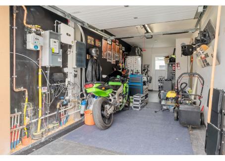 Binnenin geniet je van 3 ruime slaapkamers, een volledig uitgeruste badkamer met zowel bad als douche, en een inpandige garage die directe toegang biedt tot de woning. De leefruimte is licht en ruim, met een moderne keuken en aangenaam zicht op de tuin.