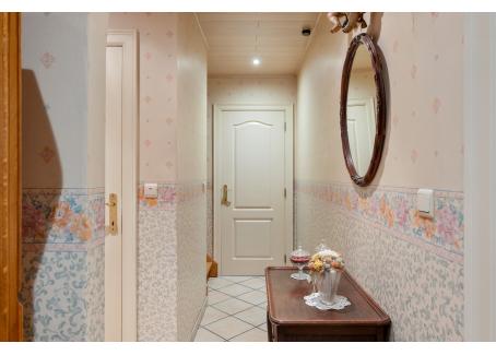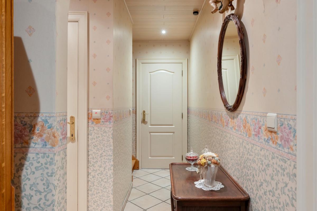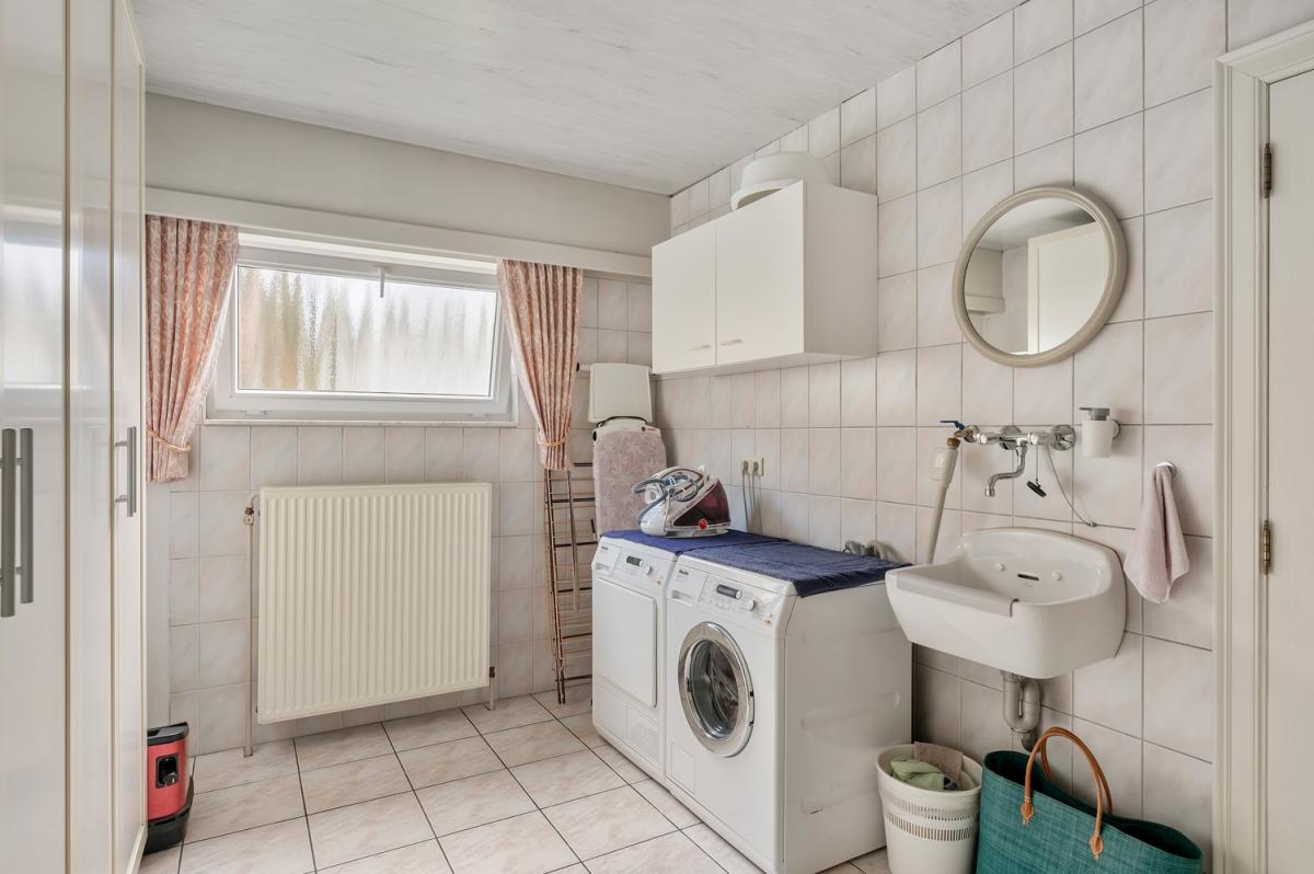 Gelijkvloers: inkomhal, apart toilet, vestaire, woonkamer met living en salon, keuken, berging 2 slaapkamers waarvan 1 met dressing en een badkamer. Eveneens is hier ook een inpandige garage.