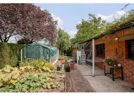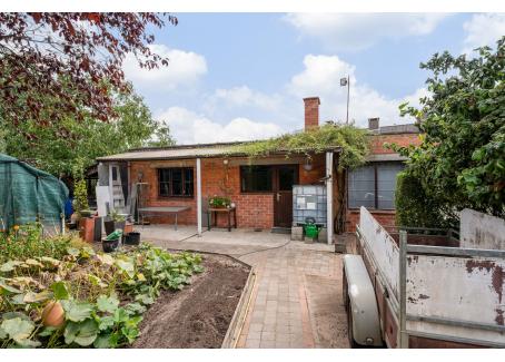Achteraan het perceel bevindt zich een bijgebouw van zo'n 65m˛ waar vroeger in gewoond is. Alle nutsvoorzieningen zijn hier aanwezig. Dit zou ook perfect kunnen gebruikt worden als dubbele garage.