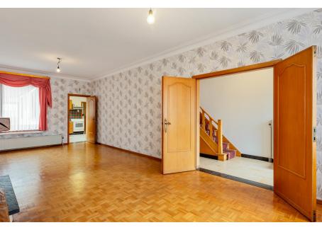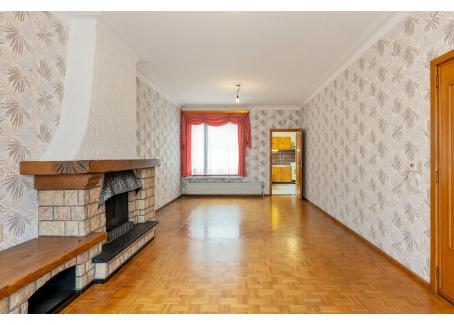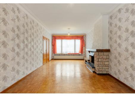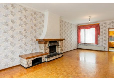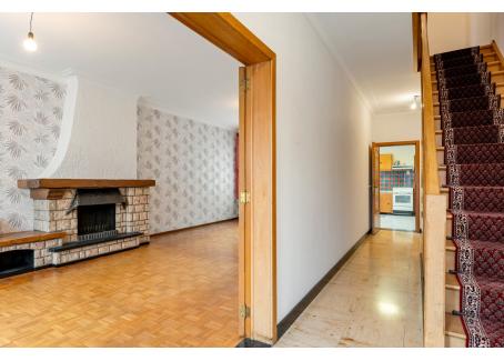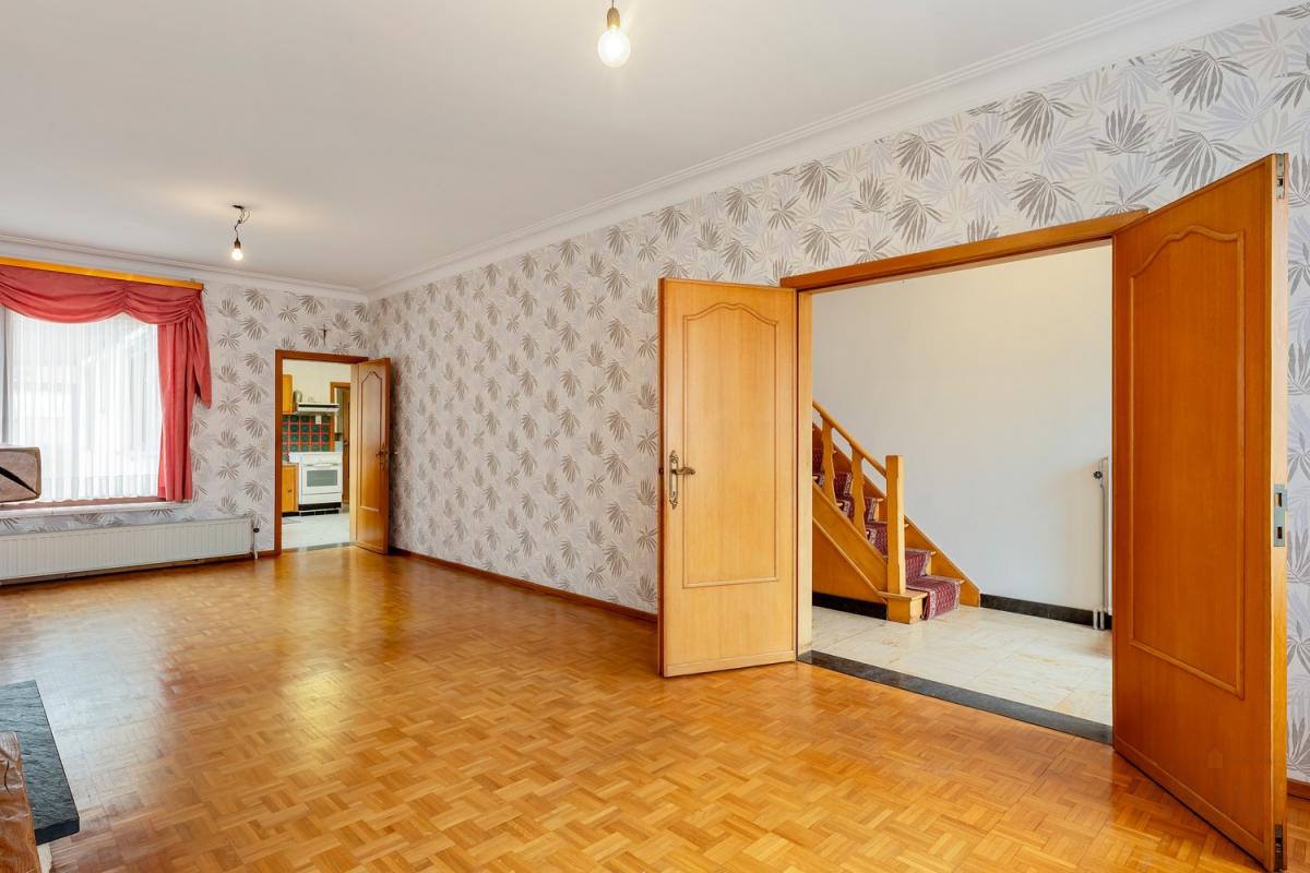 Inkomhal, Woonkamer (31,5 mē) met massief parket, thermostaat, kroonlijsten en een elektrische rolluik,