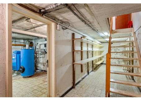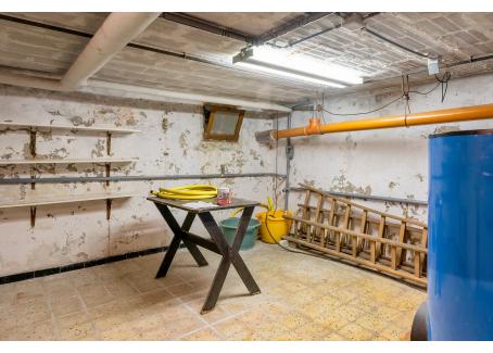 Kelder (betegeld) met gasmeter, watermeter en zekeringenkast